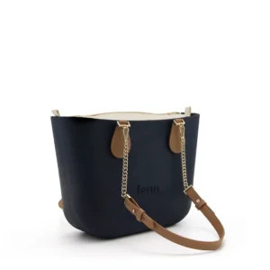 PETITE COLLECTION – NAVY – beige inner – gold zip – light tan – gold chain handle
